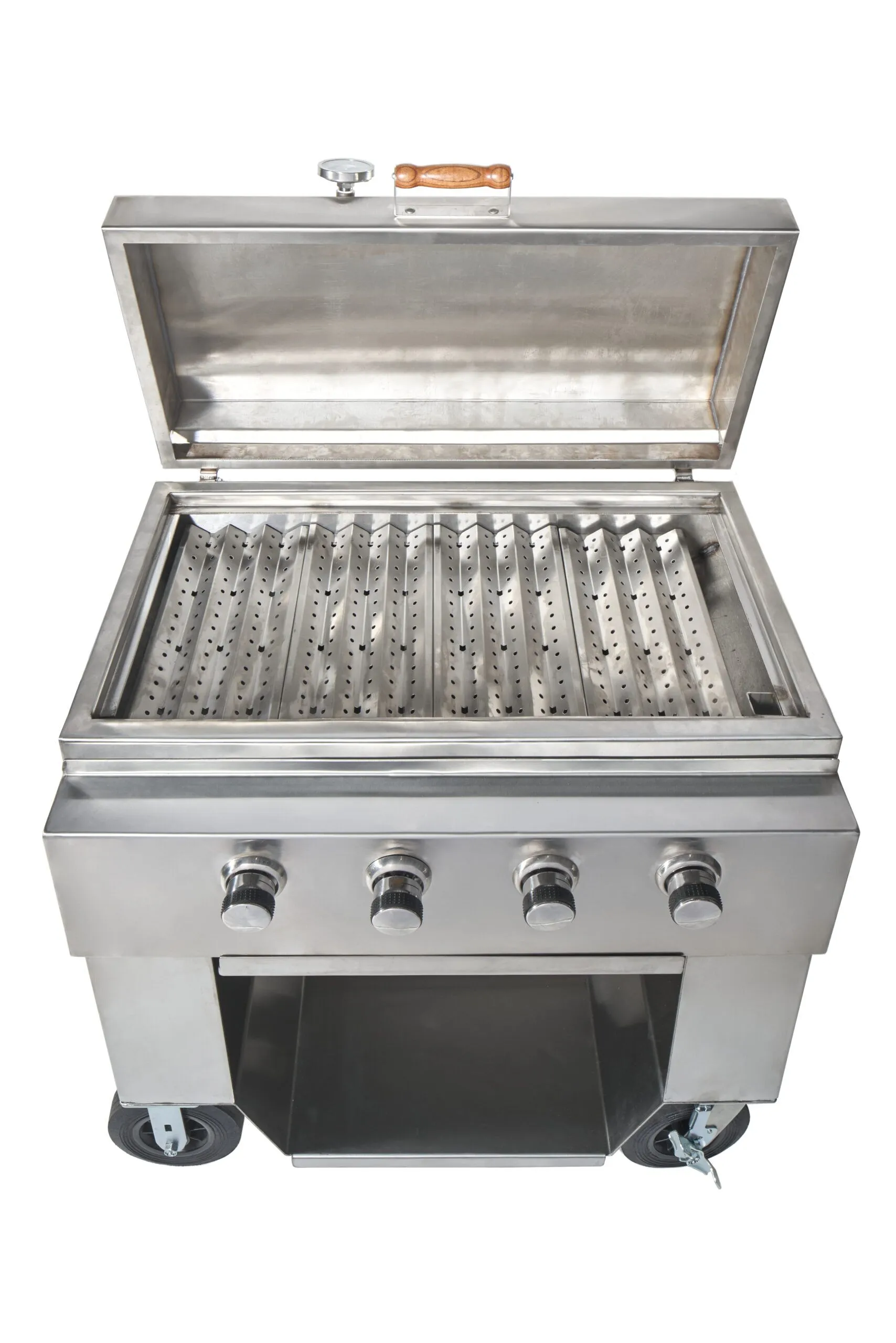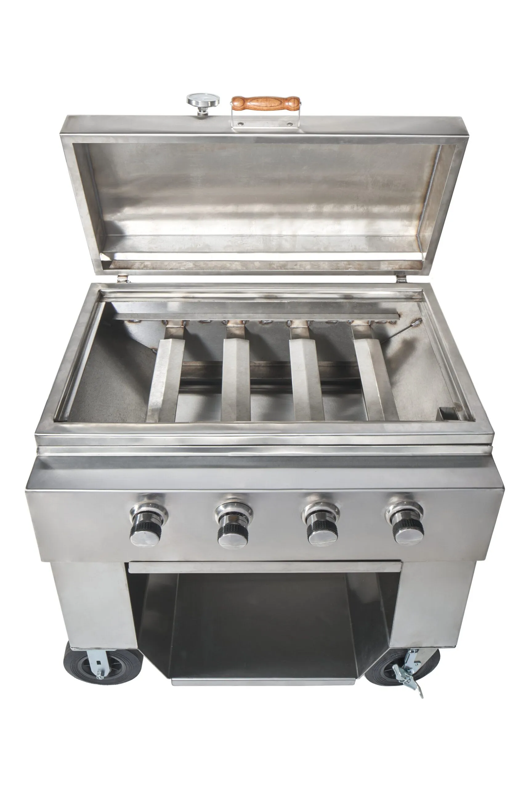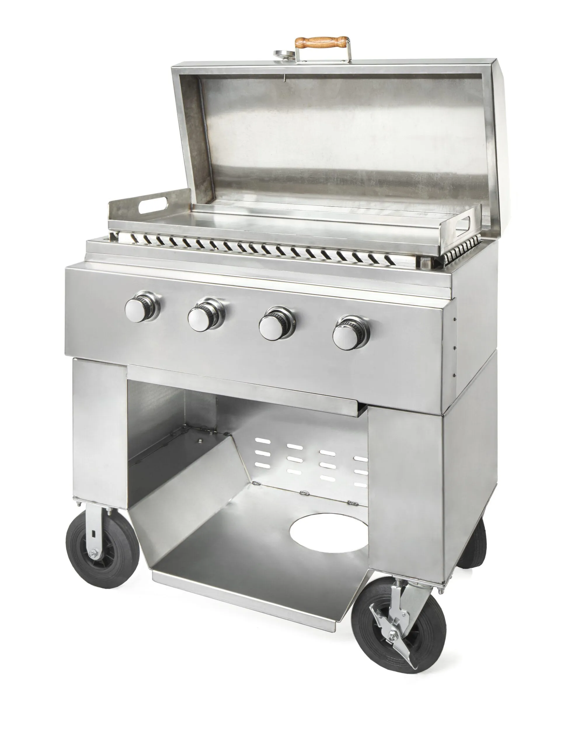 The Pitts & Spitts gas griddle combines the power of a traditional grill with the versatility of a flat-top griddle. Engineered with precision and crafted from top-quality materials, this versatile griddle is set to revolutionize your outdoor cooking experience. Constructed of 304 marine-grade stainless steel and a fully welded design, the griddle comes with four burners to accurately manage your heat zones and gets blistering hot with 80,000 BTUs.