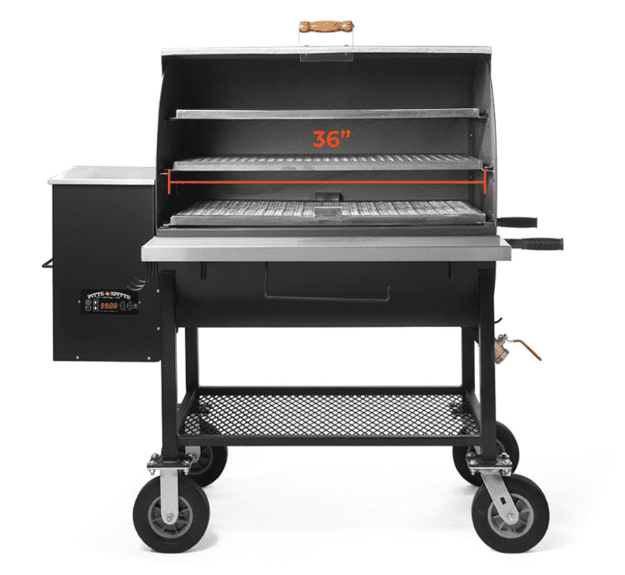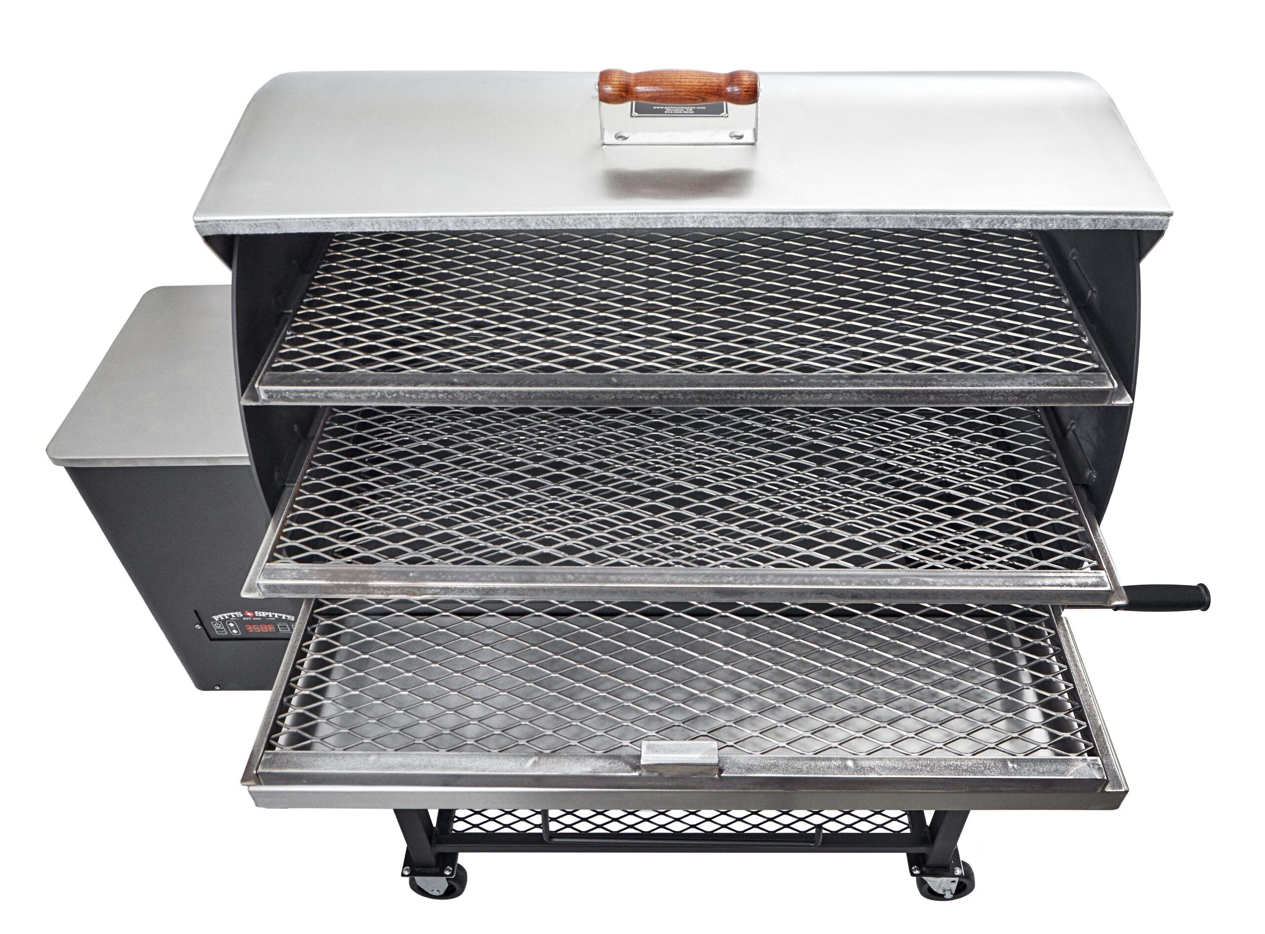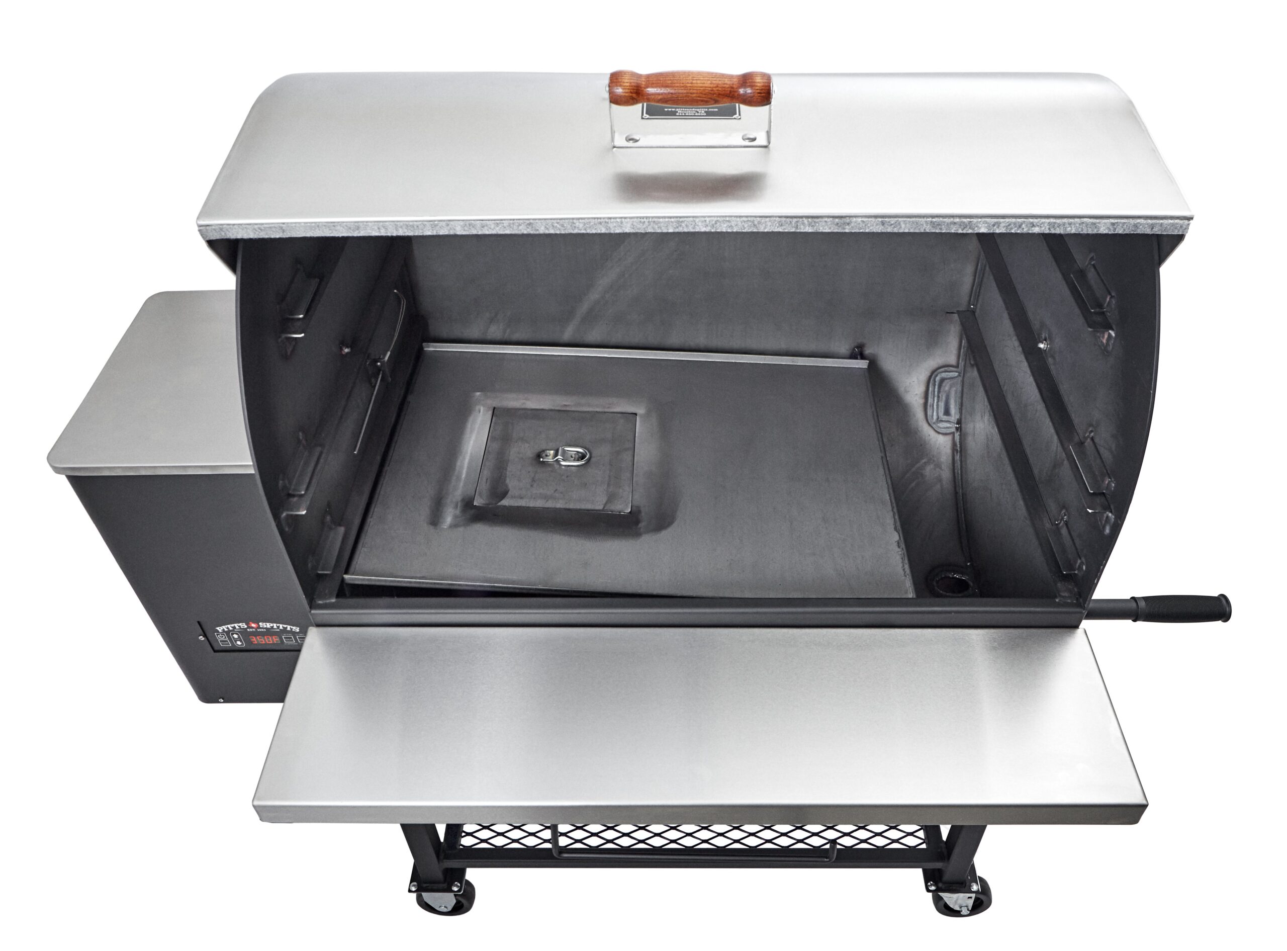 The carbon steel cooking chamber is made of 7 and 10 gauge carbon steel. This grill comes standard with our signature 304 stainless steel lid and work shelf.