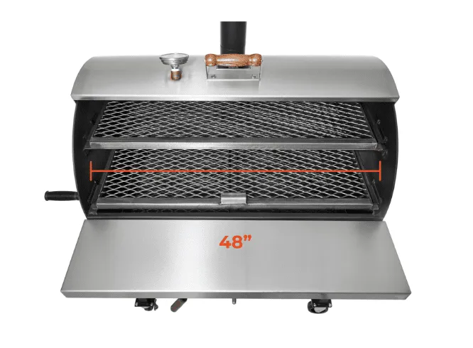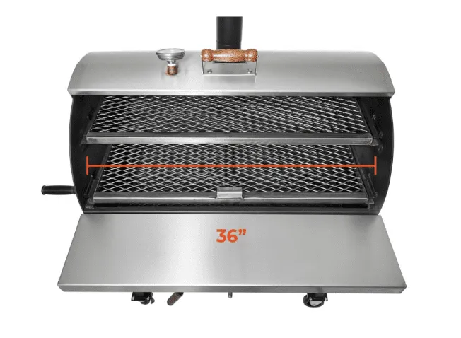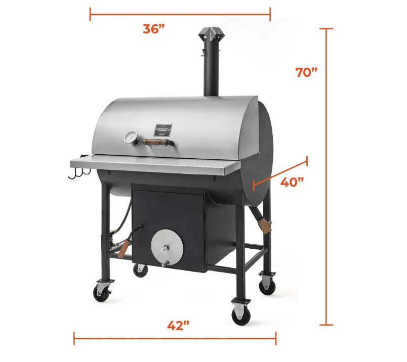 - Stainless steel screw intake damper on the firebox for precise temperature control and upper smoke stack damper for controlling smoke